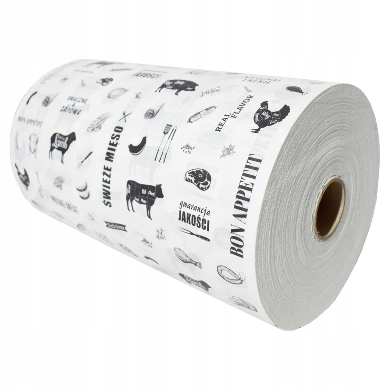 Papier o szerokości 35cm, w rolce 10 kg idealnie sprawdzi się w sklepach mięsnych, zakładach przetwórstwa oraz gastronomii.